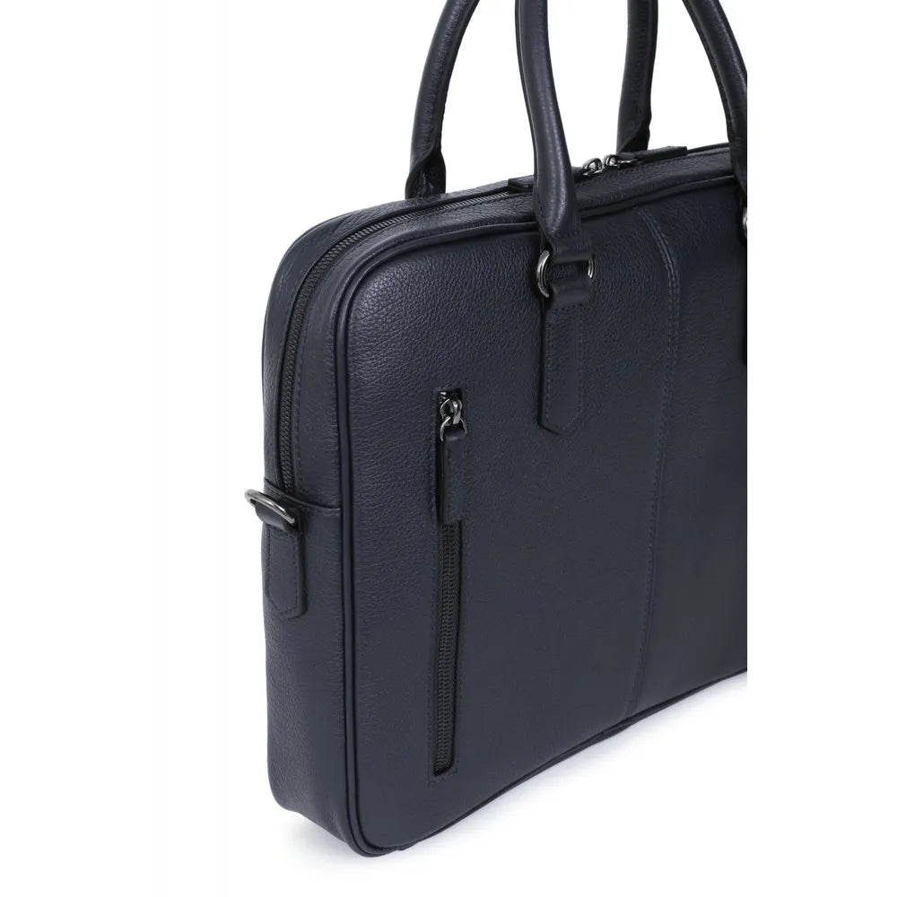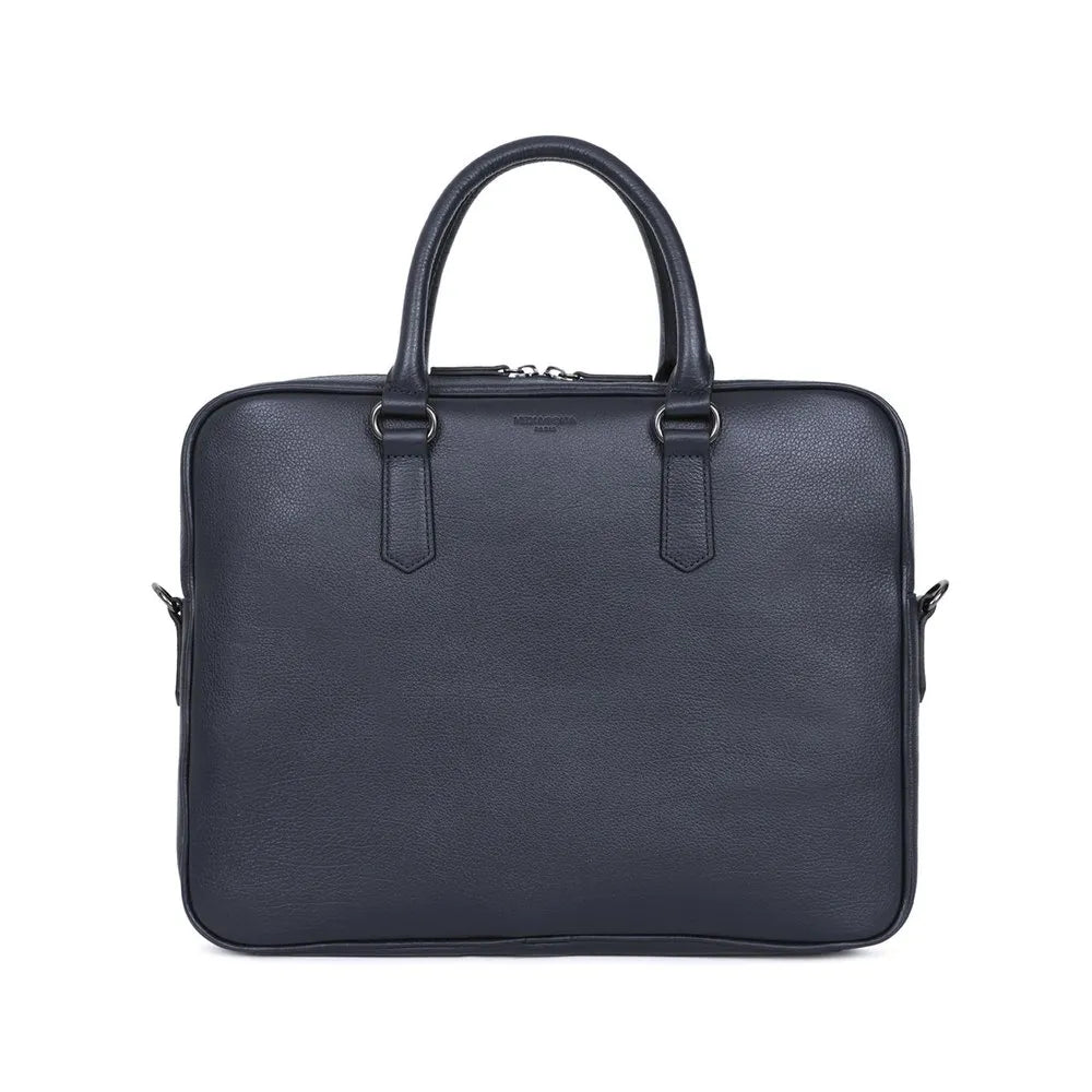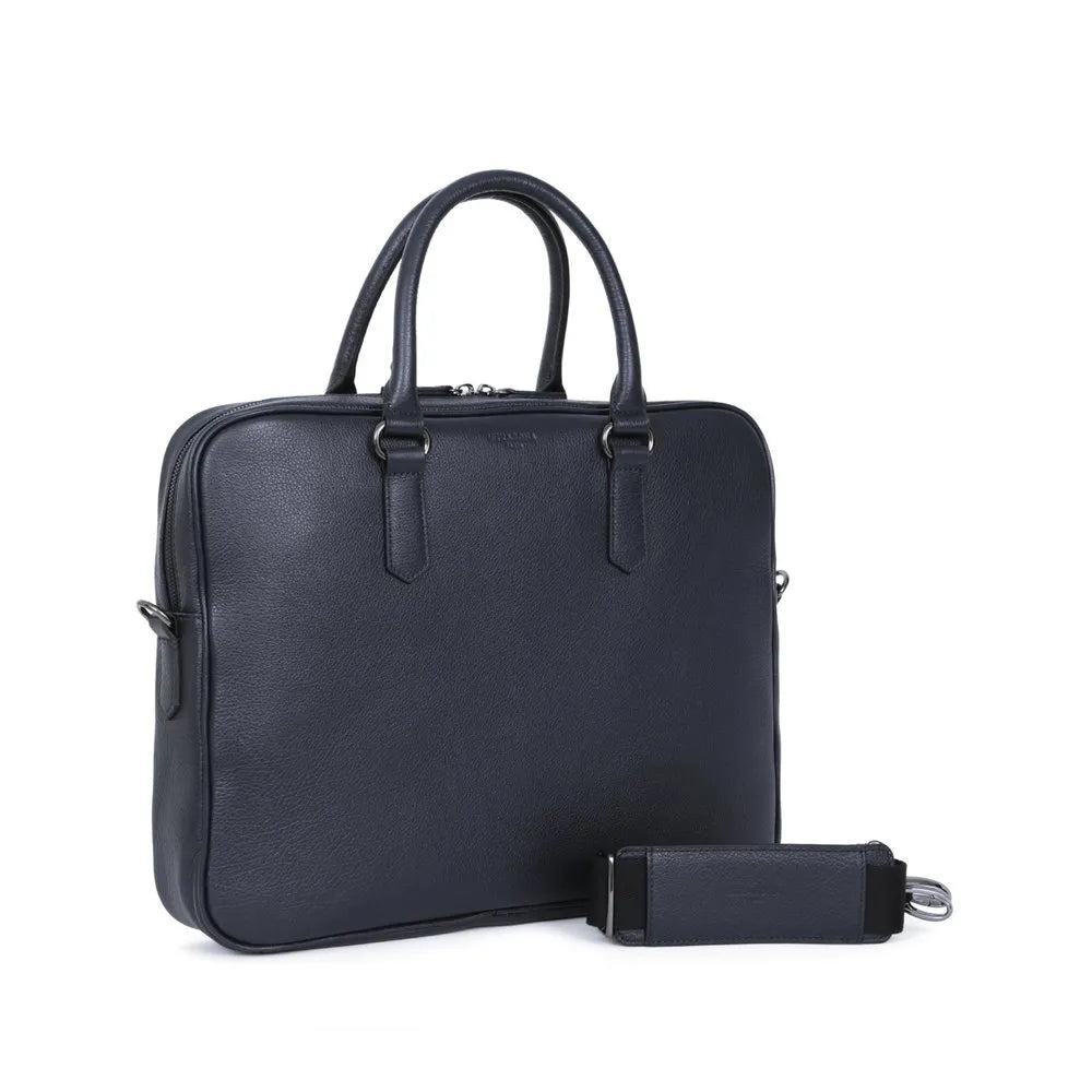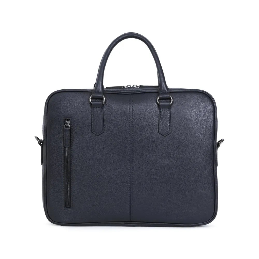 Dimensioni: L 36 x H 28 x P 6 cm. Peso: 1,1 kg. Materiale: pelle martellata di bufalo. Fodera: sintetico Finitura: canna di fucile lucido.1 chiusura con zip a doppio cursore. Esterno: 1 tasca piatta posteriore con zip. Interno : 1 scomparto principale con 1 scomparto imbottito per laptop. 1 tasca piatta con cerniera. 3 tasche piatte (di cui 1 scomparto per telefono). 2 scomparti per penne. Compatibile con laptop 13´´, formato A4 e telefono cellulare.2 maniglie non rimovibili non regolabili (41 cm). 1 tracolla aggiuntiva regolabile rimovibile con spallina (91,5 cm mini/153 cm max).