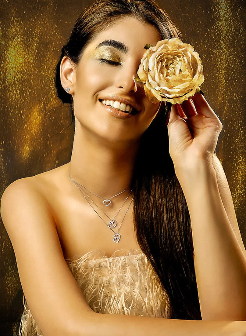 COLLANA AMBROSIA GIOIELLI DUE CUORI IN ORO BIANCO