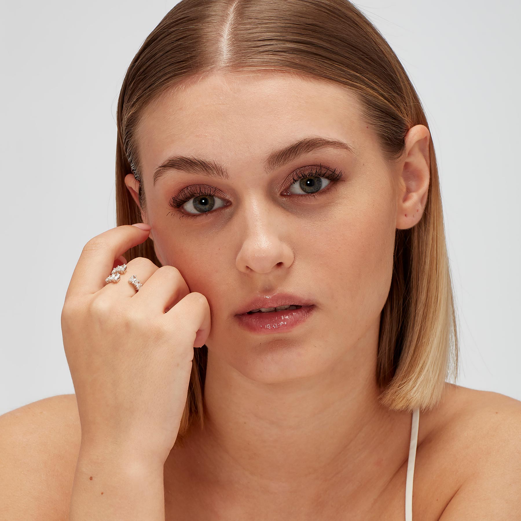 Anello in argento rodiato 925‰ con baguette cubic zirconia.