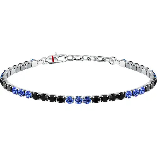 BRACCIALE SECTOR TENNIS - SANN56 - Genere: Uomo, Misura: 19|3, Colore: Silver, Fashion, Modello: Tennis, Materiale: Acciaio, Smalto, Cristalli, Peso: 5,300 gr, Pietra: Cristallo, Colore pietra: Nero, Viola, Certificato di autenticità: Sì, Confezione: Originale Sector