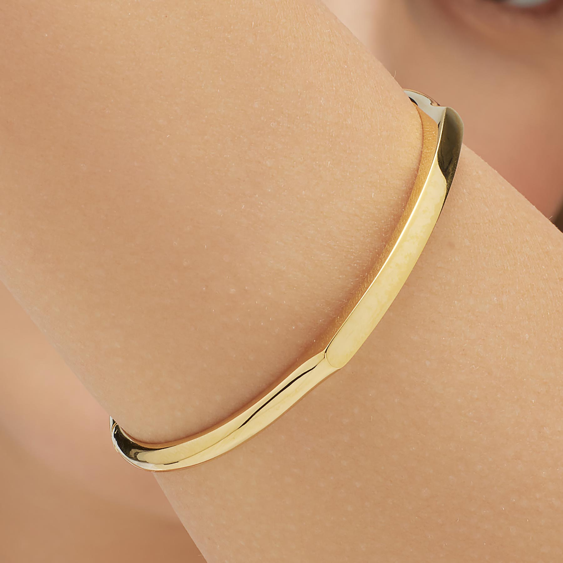 Bracciale rigido in acciaio 316L lucido e finitura pvd oro 14K.