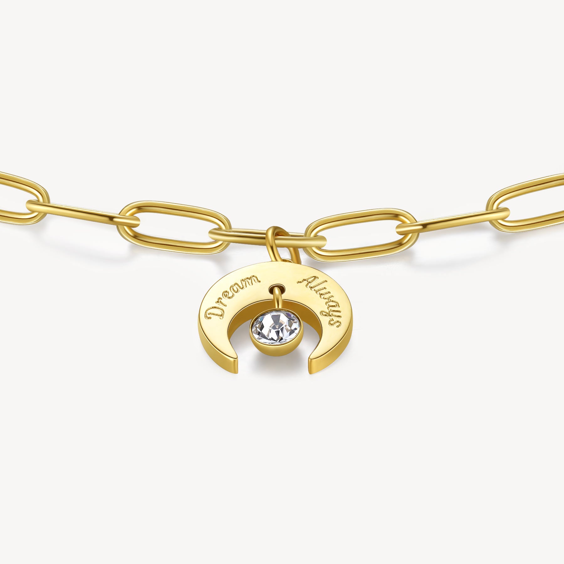 Cavigliera da donna di Brosway della collezione chakra. Cavigliera realizzata in acciaio e pvd oro con luna e cristallo. Dimensioni: 25 cm.