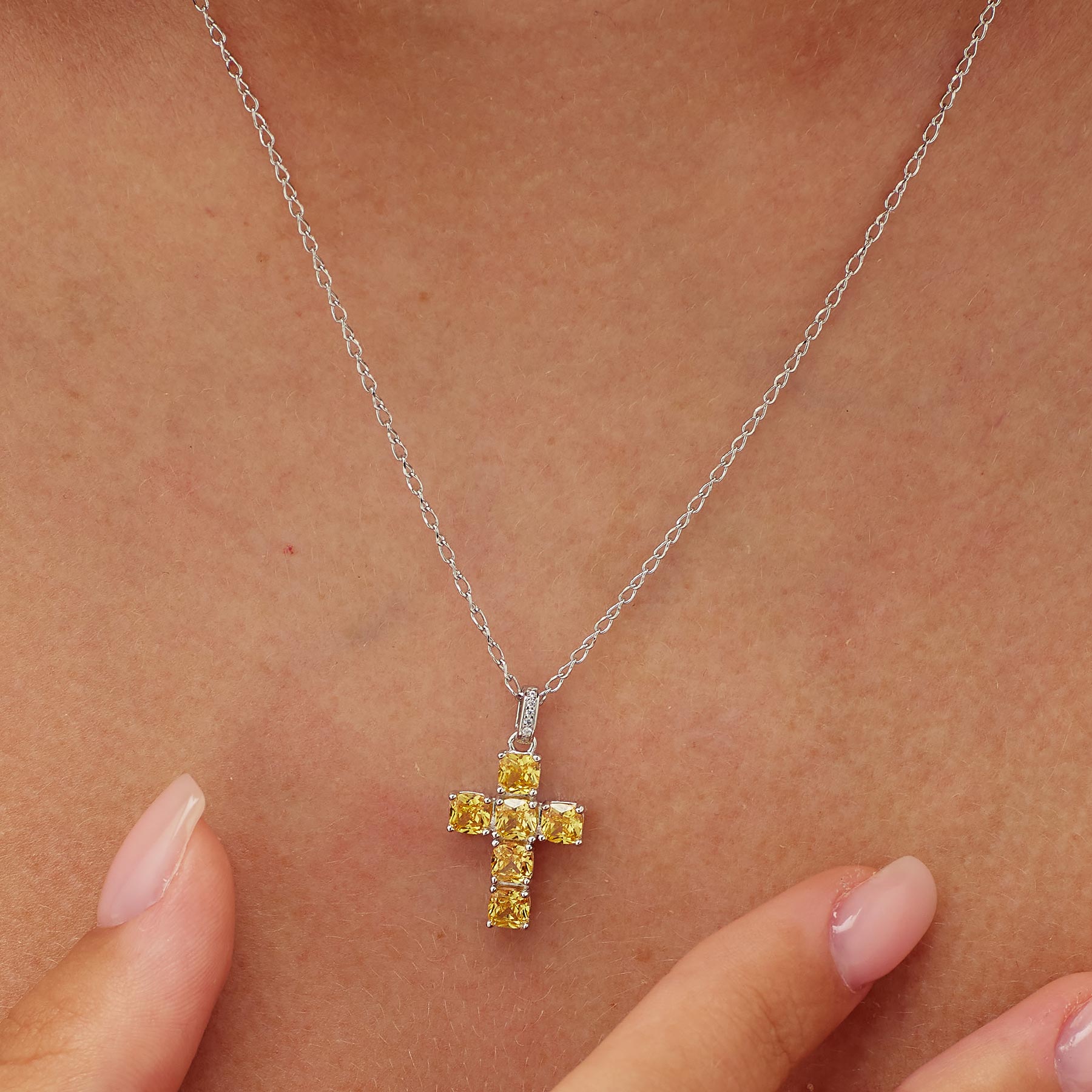 Pendente a forma di croce in argento rodiato 925‰ con cushion cubic zirconia colore golden yellow.
