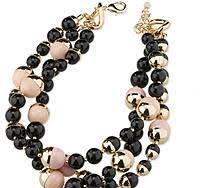Collana da donna di Sovrani della collezione Fashion Mood. Collana in ottone, finitura in oro 18 kt con agata nera e conchiglia ricoperta perlizzata rosa, di misura: cm 40+5 e chiusura a moschettone. La referenza è: j10612