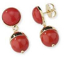 Orecchini da donna di Sovrani della collezione Fashion Mood. Orecchini in ottone, finitura in oro 18 kt con pasta di corallo, di misura: cm 3 e chiusura a farfallina. La referenza è: j10627