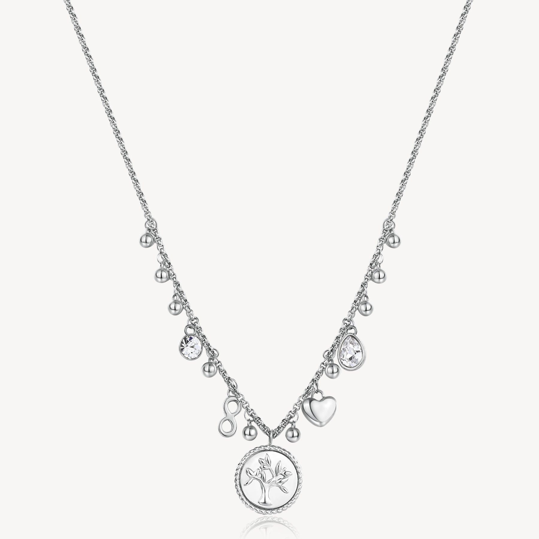 Collana di Brosway della collezione Chakra. Gioiello da donna in acciaio 316L con simbolo albero della vita. Lunghezza: 50 cm.