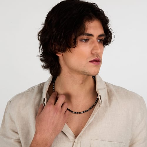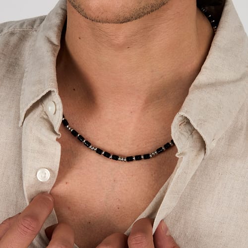 COLLANA SECTOR BASIC - SZS130 - Genere: Uomo, Misura: 50|3, Colore: Silver, Nero, : Fashion, Materiale: Acciaio, Smalto, Peso: 28,200 gr, Diametro perle: 2.4x4.3mm mm, Pietra: Agata, Colore pietra: Nero, Certificato di autenticità: Sì, Confezione: Originale Sector