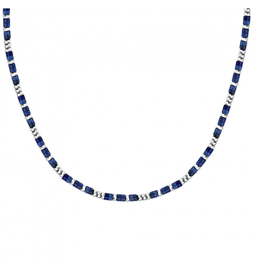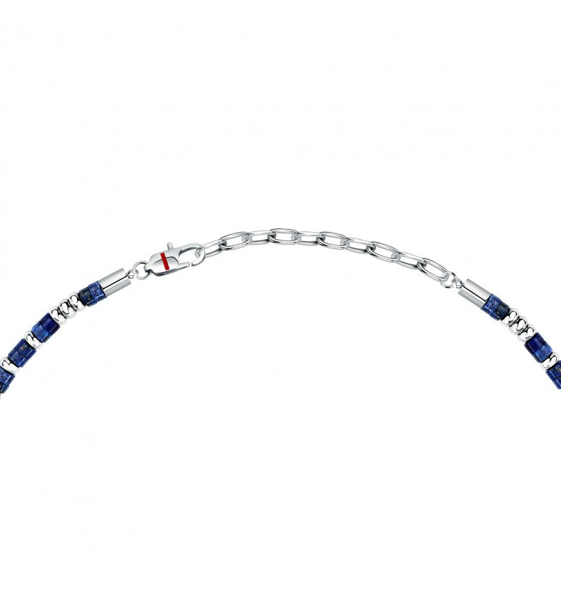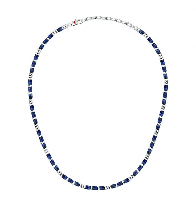 COLLANA SECTOR BASIC - SZS131 - Genere: Uomo, Misura: 50|3, Colore: Silver,: Fashion, Materiale: Acciaio, Smalto, Peso: 28,180 gr, Diametro perle: 2.4x4.3mm mm, Pietra: Lasurite, Colore pietra: Blu, Certificato di autenticità: Sì, Confezione: Originale Sector