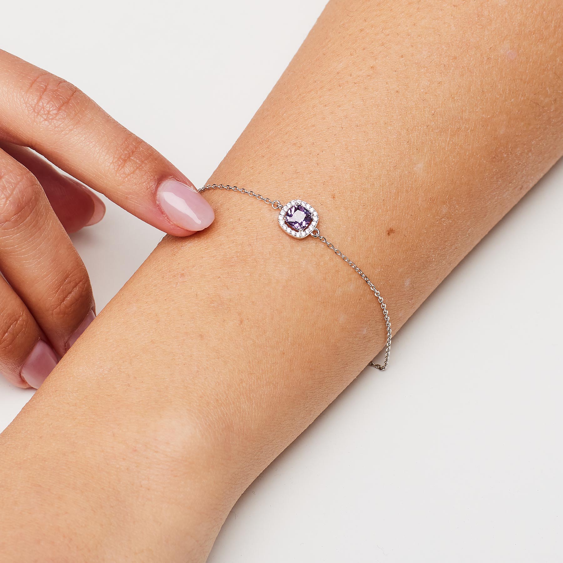 Bracciale in argento rodiato 925‰ con cubic zirconia chiari e cubic zirconia colore amethyst.