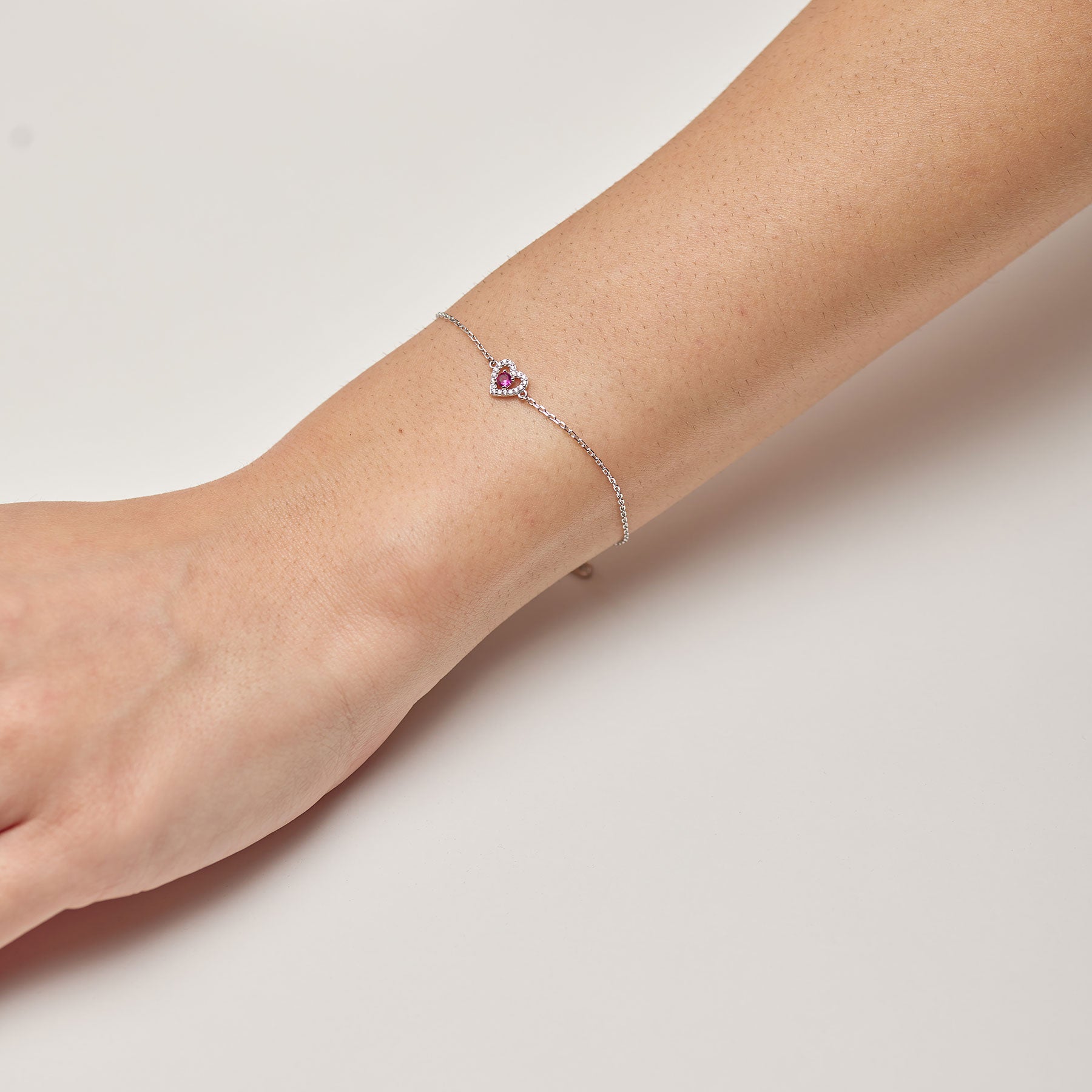 Bracciale in argento rodiato 925‰ con centrale a forma di cuore con cubic zirconia chiari e colore ruby.