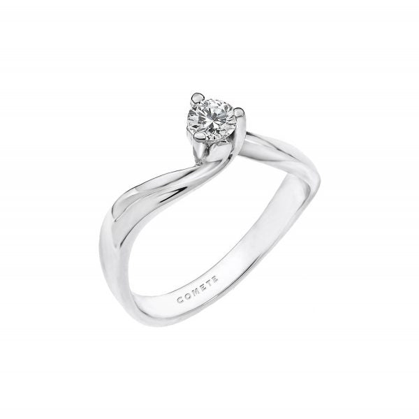 Anello Solitario Comete collezione Prestige, in Oro Bianco 18K impreziosito da un Diamante P.Ct. 15, Colore E, SI Clarity.