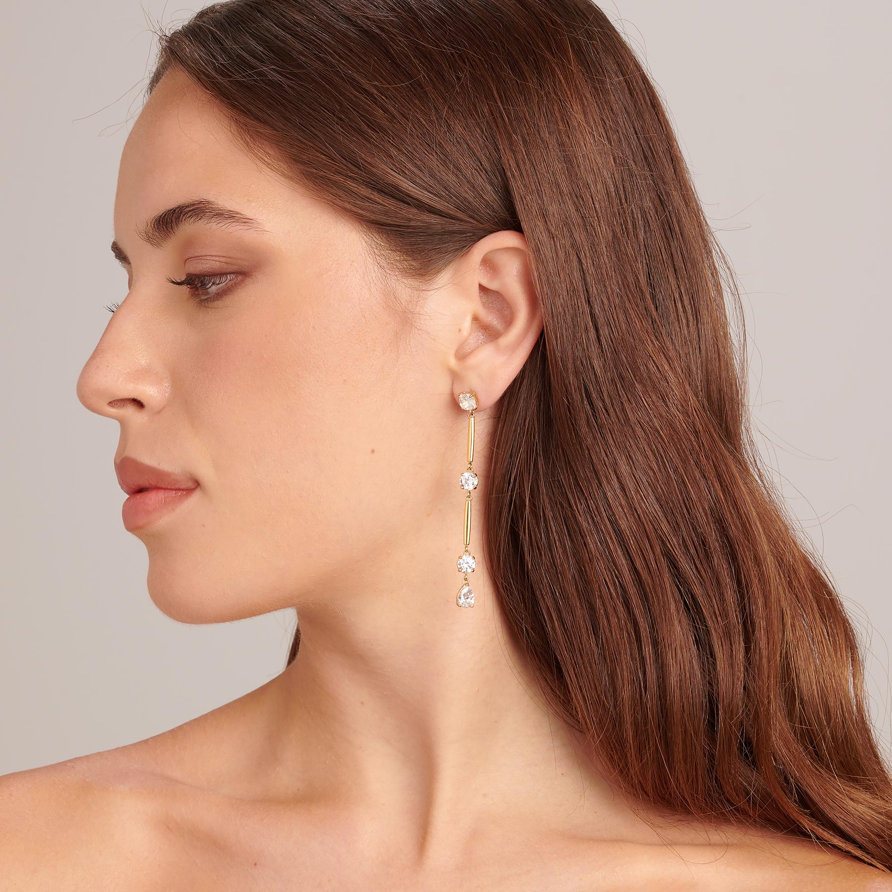 Orecchini pendenti in acciaio 316L, finitura pvd oro 14K e cubic zirconia.