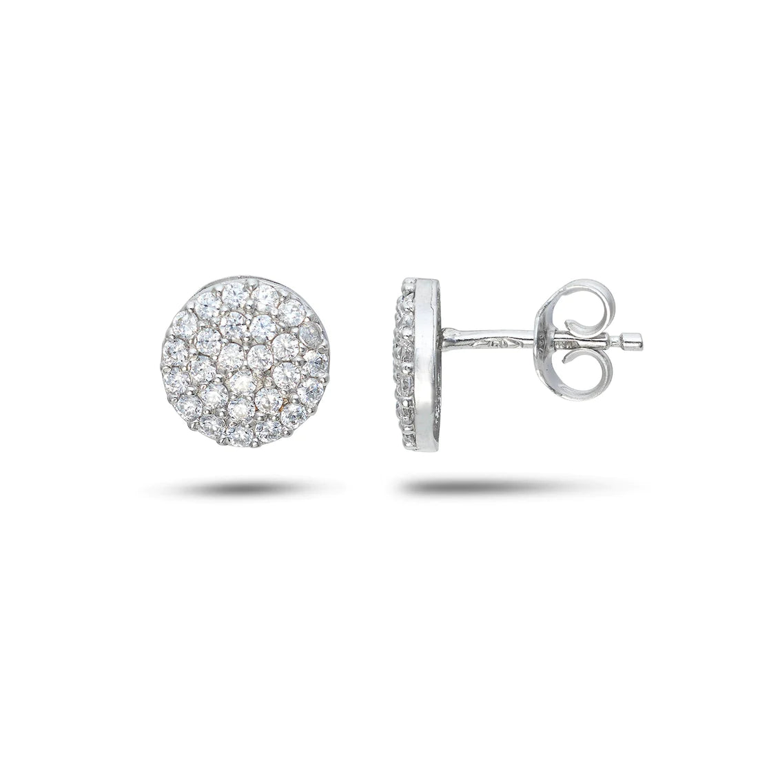 Orecchini Ambrosia Gioielli in oro bianco 750/°° rodiato tondo grande con zirconi incassati a pavè, realizzato in Italia della collezione Dea di luce. Chiusura a farfallina. cod AOZ 529