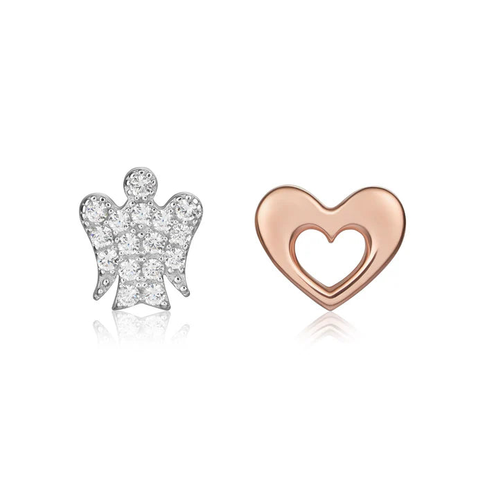 ROBERTO GIANNOTTI Orecchini Con Angelo pavé e Cuore in argento rosato