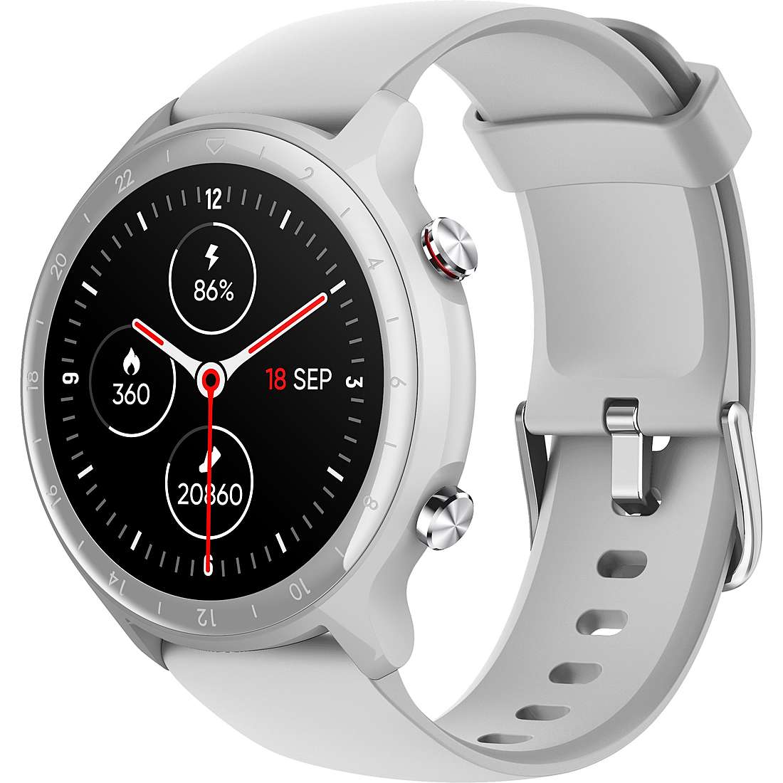 Smartwatch da uomo di Smarty. La cassa è rotondo realizzato in ceramica di colore grigio e di dimensione 45 mm. Il cinturino realizzato in silicone di colore bianco con fibbia ad ardiglione. Ha un display touch digitale e supporta i sistemi: android 4. 4/apple superiore a ios 8. 0. Il tempo di standby è di 30 giorni, il normale uso 5-7 giorni. Funzioni benessere: livello di saturazione di ossigeno nel sangue (30 giorni, il normale uso 5-7 giorni), pressione sanguigna, controllo della qualità del sonno, frequenza cardiaca. Funzioni sport: gps, pedometro, distanza percorsa, consumo calorie, promemoria sedentario, meteo, battiti per minuto e tempo (bpm/cal/tempo). Funzioni cellulare: notifica chiamate e messaggi, trova orologio, controllo della musica, controllo remoto foto, funzione anti-smarrimento smartphone. La referenza è sw031b