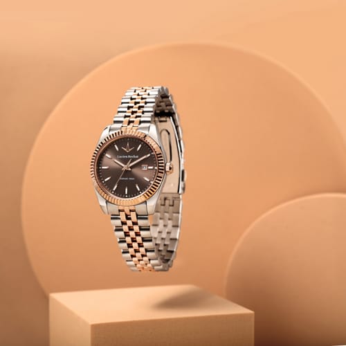 OROLOGIO LUCIEN ROCHAT BIENNE - R0453124514 - Genere: Donna, Materiale e finitura cassa: Acciaio, Misura cassa: 31.00mm, Spessore cassa: 8.50mm, Finitura cassa: Lucido, Colore cassa: Silver, Vetro: Vetro minerale, Materiale cinturino: Acciaio, Colore cinturino: Oro rosa, Silver, Chiusura: Fibbia deployante con pulsanti, Water resistant: 5 atm, Garanzia: Ufficiale 2 anni Lucien rochat, Confezione: Originale Lucien rochat