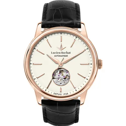 OROLOGIO LUCIEN ROCHAT ICONIC - R0421116011 - Genere: Uomo, Materiale e finitura cassa: Acciaio, Pelle, Misura cassa: 42.00, Spessore cassa: 12.30, Finitura cassa: Lucido, Colore cassa: Oro rosa, Vetro: Vetro zaffiro, Materiale cinturino: Pelle, Colore cinturino: Nero, Chiusura: Fibbia ardiglione, Water resistant: 3 atm, Garanzia: Ufficiale 2 anni Lucien rochat, Confezione: Originale Lucien rochat