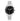 Quadrante analogico nero con indici a bastoni, datario a ore 6 e logo nella parte alta. Vetro minerale a doppia curvatura.