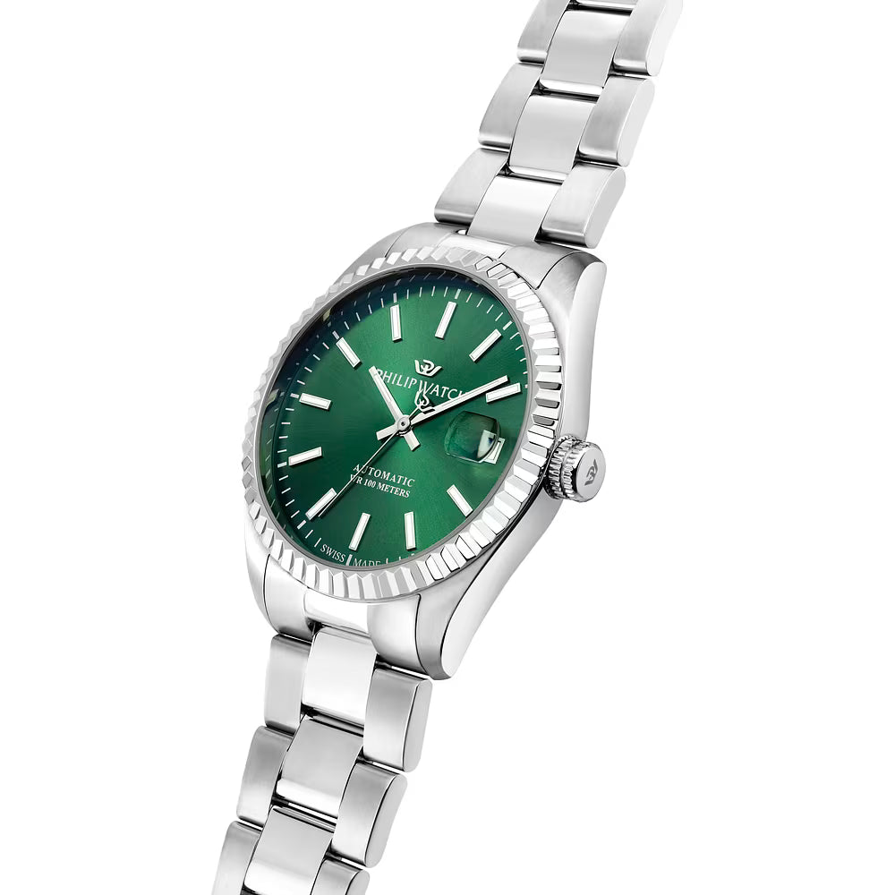 OROLOGIO PHILIP WATCH CARIBE URBAN - R8223597116 - Genere : Uomo, Materiale e finitura cassa: Acciaio, Misura cassa: 39.00mm, Spessore cassa: 11.00mm, Finitura cassa: Lucido e satinato, Colore cassa: Silver, Vetro: Vetro zaffiro, Materiale cinturino: Acciaio, Colore cinturino: Silver, Chiusura: Fibbia diver con blocco sicurezza, Movimento: Automatico, Swiss made: Sì, Water resistant: 10 atm, Garanzia: Ufficiale 2 anni Philip Watch, Confezione: Originale Philip Watch